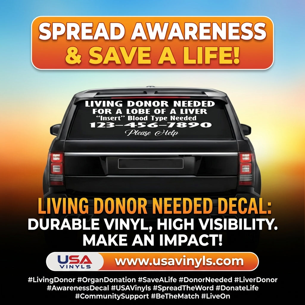 Our “Living Donor Needed” vinyl decal helps families spread lifesaving messages far and wide — right from their car, window, or laptop.